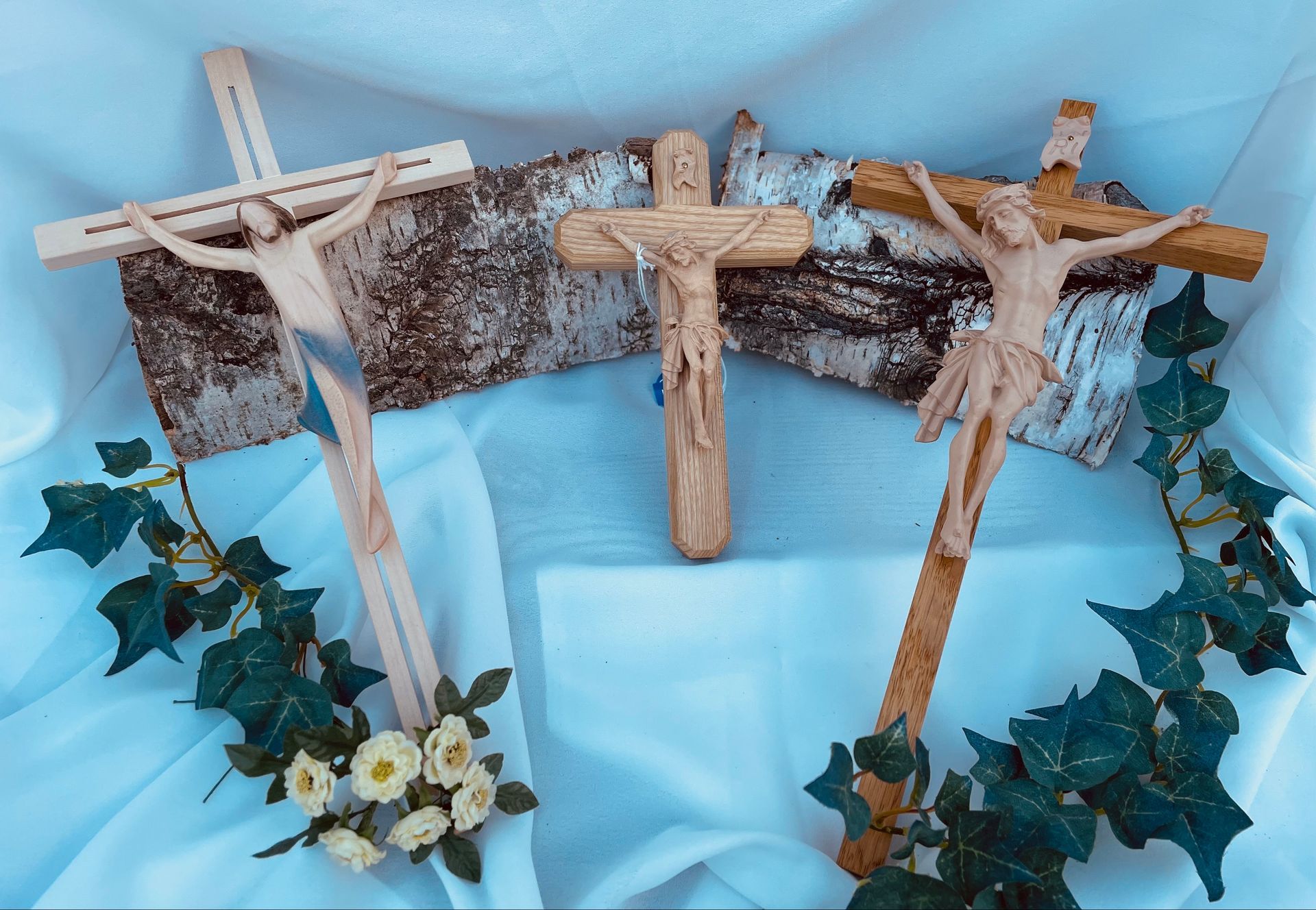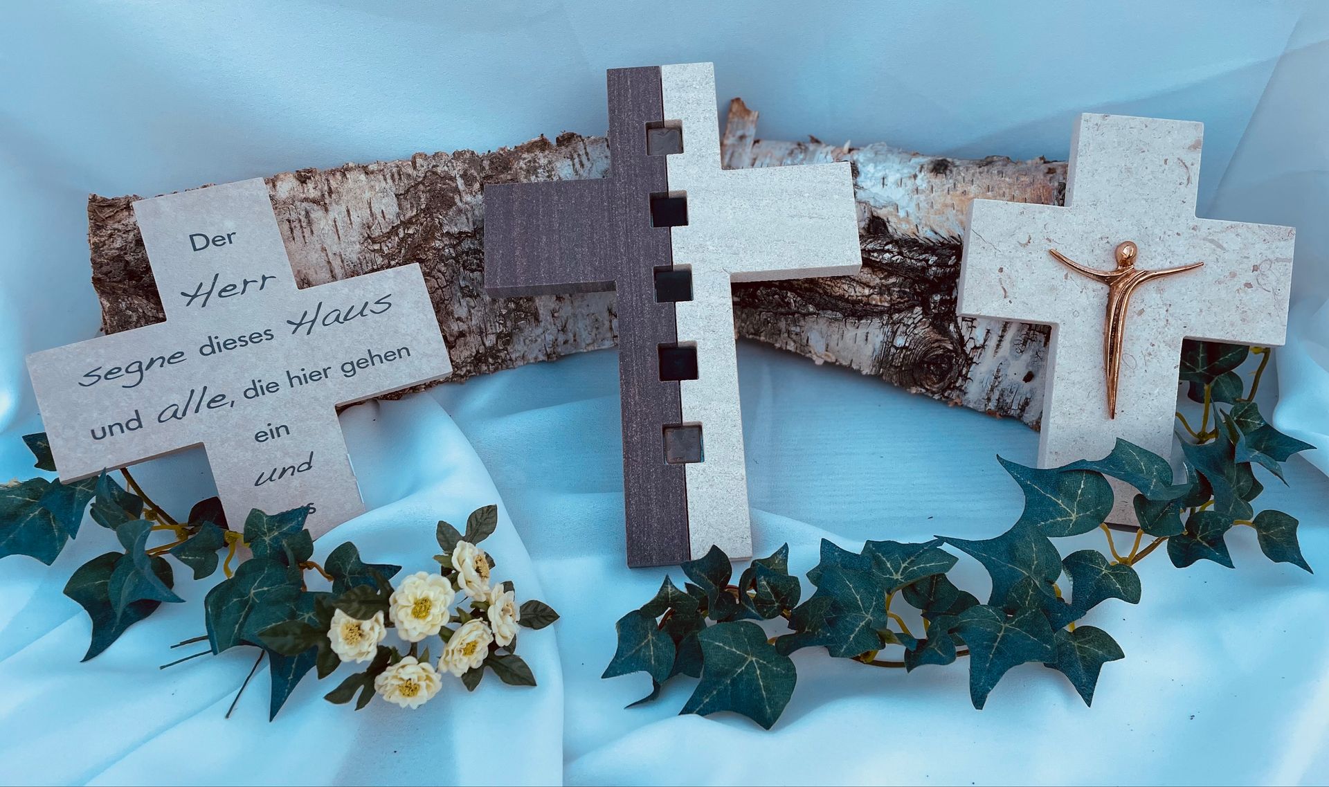 Hier finden Sie eine kleine Auswahl von Wand- & Stehkreuze sowie Weihkessel, Kerzen & Co.. Eine Vielzahl an weiteren Varianten der Produkte können im Geschäft und in den Katalogen der Kooperationsfirmen individuell ausgesucht und bestellt werden.
